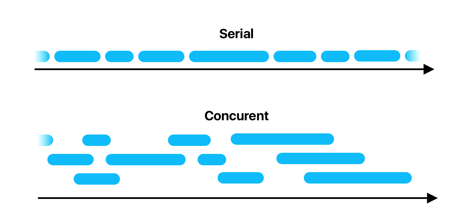 Не сложно догадаться, что на serial очереди задачи будут выполняться последовательно, друг за другом, а на параллельной будут выполнятся одновременно. По умолчанию очередь создаётся с последовательными выполнением задач, а чтобы создать concurrent очередь, необходимо явно это указать