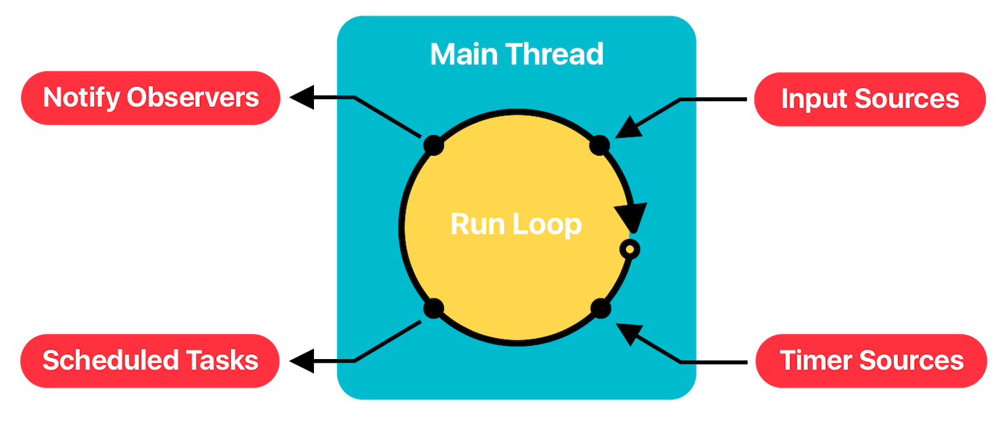 NSThread — второй слой абстракции, которая нам заботливо предоставила Apple. Помимо более привычного Objective-C синтаксиса для создания и управления потоками, корпорация предоставила RunLoop — цикл обслуживания задач и событий. RunLoop использует инструменты микроядра Mach (порты, XPC, ивенты и задачи) для управления потоком POSIX и может перевести поток в режим сна, если ему нечего делать и пробудить, когда появиться работа.